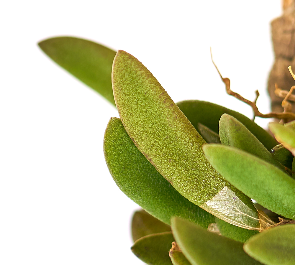 특징 : 독특한 잎 모양을 가지고 있으며, 착생시켜 키우는 것이 관리에 더 용이한 품종